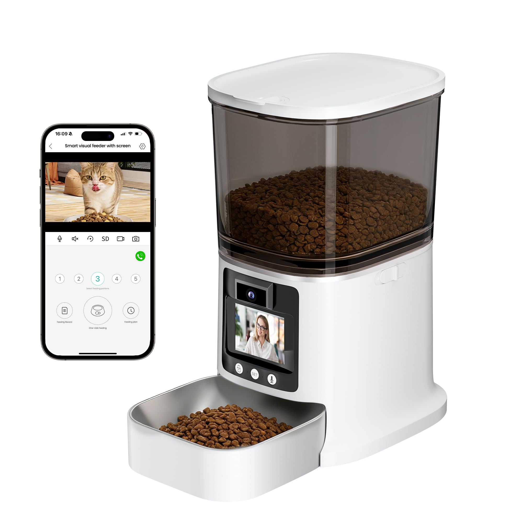 Two-Way Video & Real-Time Pet Interaction : This automatic cat feeder with camera allows you to check in and talk to your pet in real time. Unlike ordinary feeders, ours comes with a built-in screen and 3MP adjustable camera. Your furry friend can see you clearly on the screen while you chat with them remotely to calm anxiety. No more one-way monitoring—this is true, loving interaction that keeps you close to your pet anytime, anywhere.