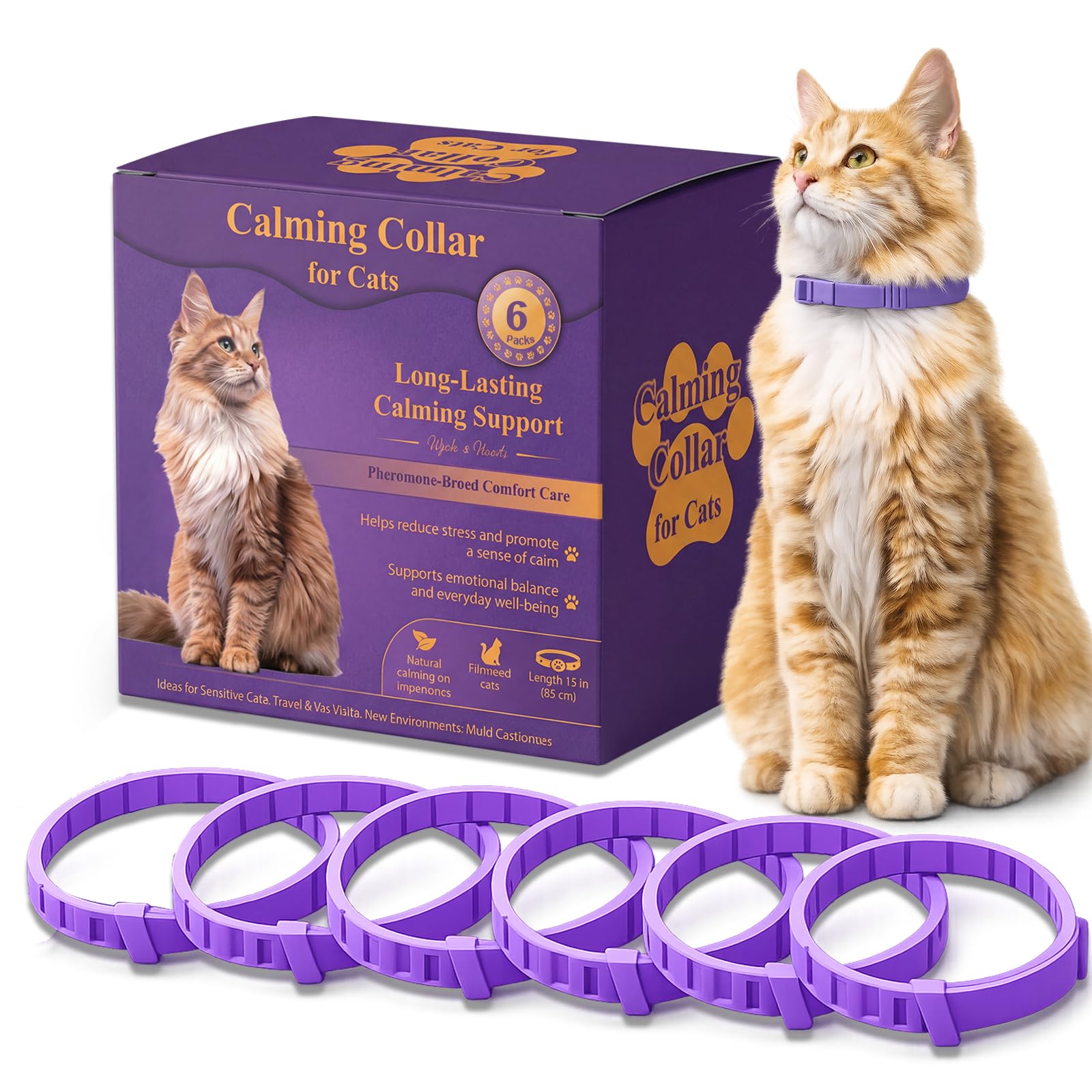 Cat Calming Collar, 6-Pack Pheromone Collars for Cats – Adjustable 15″, Up to 4 Weeks Lasting Stress & Anxiety Relief, Helps Reduce Noise Fear, Scratching & Separation Anxiety(Pruple)