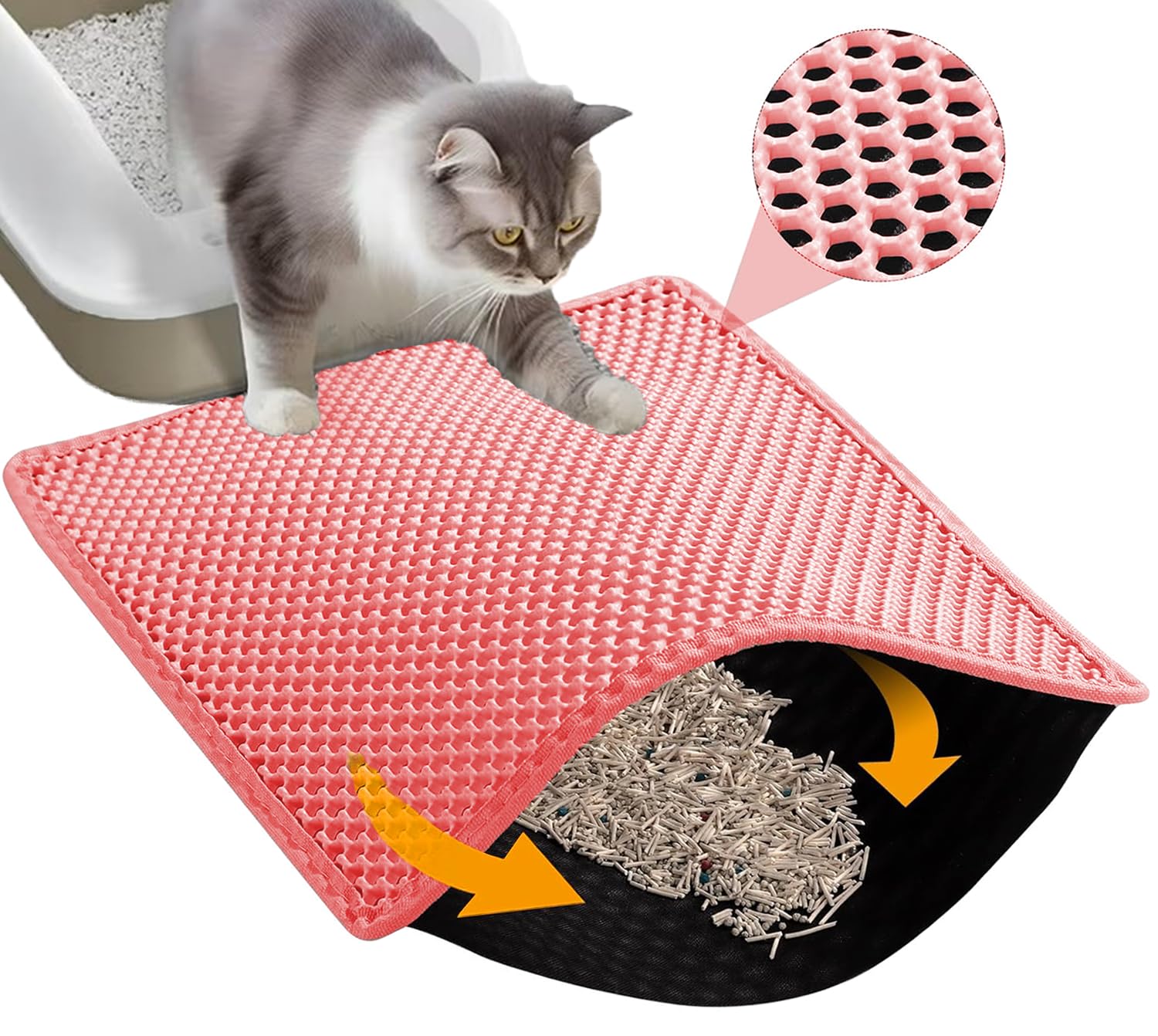 Cat Litter Mat, Honeycomb Double Layer Cat Litter Trapping Mat, Waterproof Urine Proof Non-Slip, Scatter Control, Less Waste, Easier to Clean (Pink, 35" X 24")