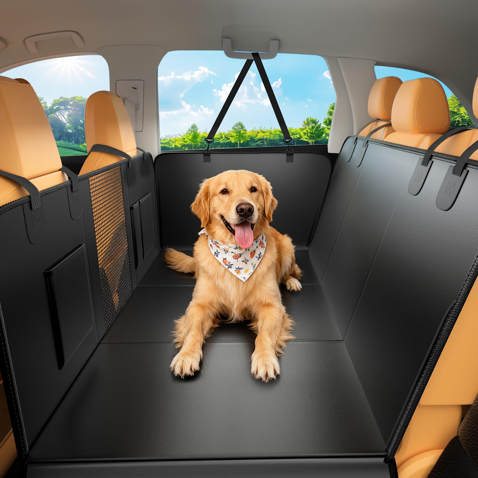【Full 52"x65" Coverage with 360° Door Protection】 Go beyond basic seat covers. Our expanded 52"x65" design delivers complete backseat protection, while extra-long side flaps form a protective barrier for your door panels and center console. Keep your interior safe from scratches, dirt, and pet hair—no matter how adventurous your dog gets.