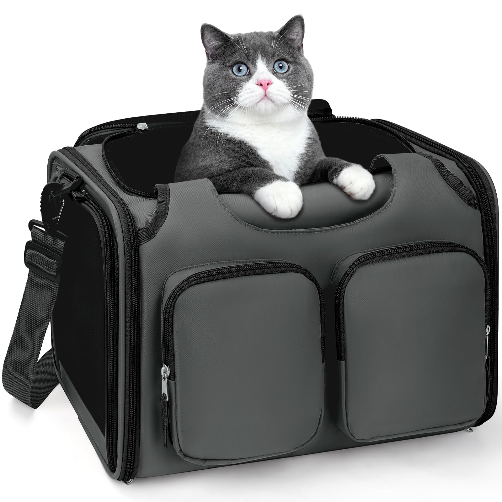 Airline Approved Pet Carrier for Cat - 17 * 11 * 11 Expandable Soft Side Pet Carrier, Collapsible Pet Travel Bag Carrier with Foldable Pet Bowl for Cat Small Animals Under 14LB