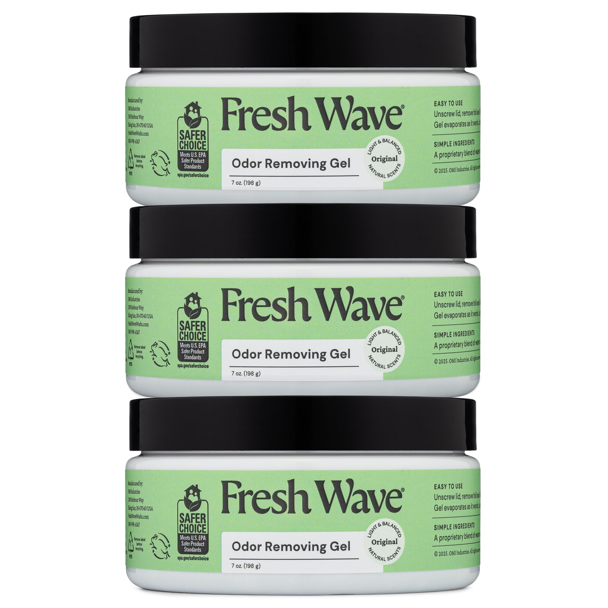 Fresh Wave Odor Removing Gel, 7 oz., Pack of 3 - Odor Absorbers for Home, Safer Odor Relief, Natural Plant-Based Odor Eliminator, Every 7 oz. lasts 15-30 Days, For Cooking, Trash & Pets