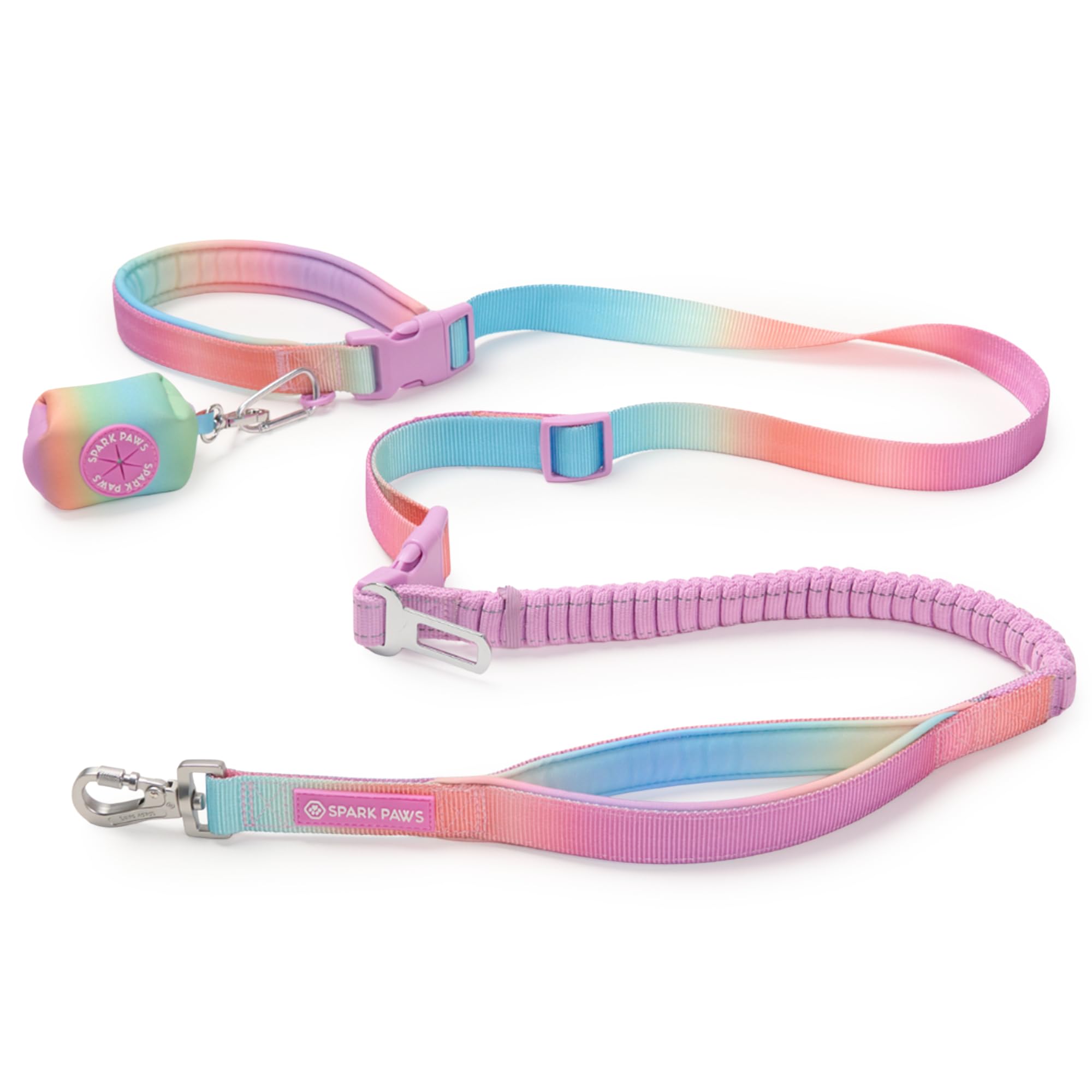 Spark Paws Handsfree Dog Leash – Shock Absorbing Waist Bungee Lead for Running, Car Seatbelt Clip & Poop Bag Set, Heavy Duty Tactical Lead for Medium, Large & X-Large Breeds - Pastel Icing